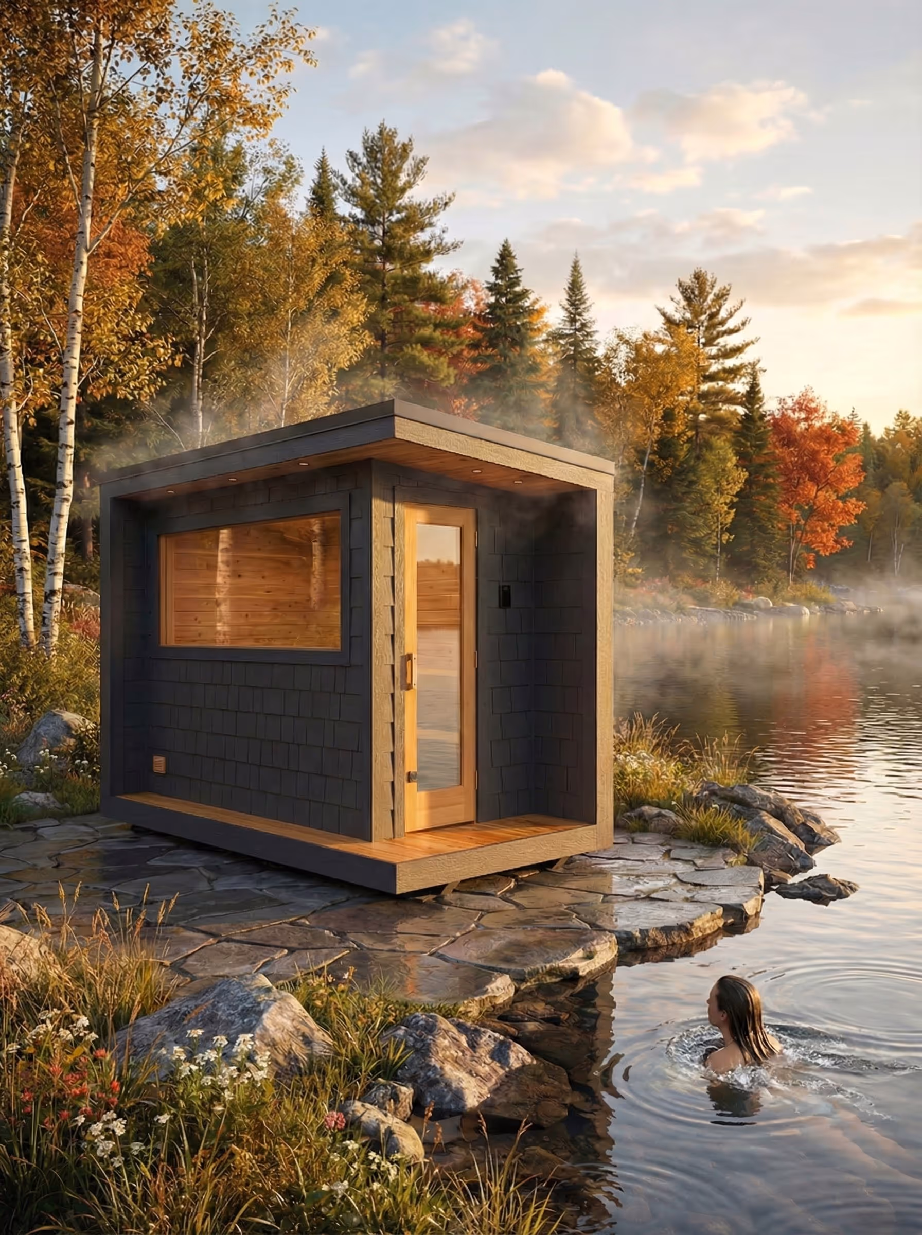 Discover outdoor saunas handcrafted for homes, cabins, and lake properties across Minnesota — each one built with intention, quality, and clean Nordic design.